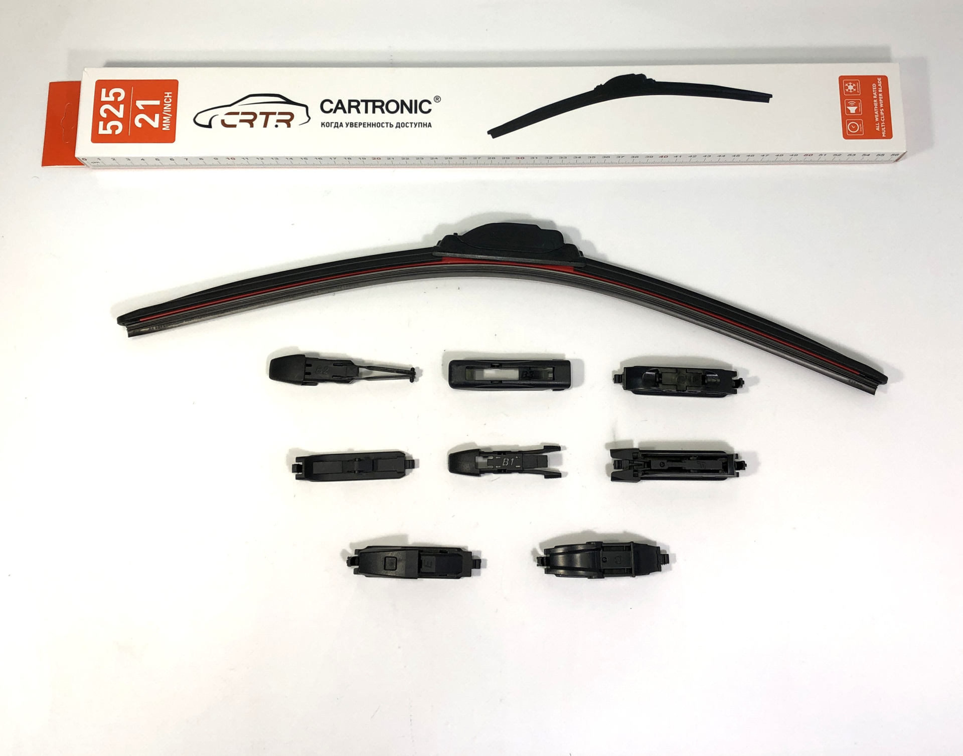 CRTR0135229 Щётка стеклоочистителя Крючок/530 мм/21"+ набор адаптер Cartronic Премиум/ Бескаркасная/